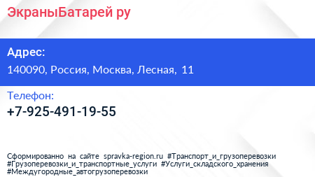ЭкраныБатарей.ру по адресу 140090, Россия, Москва, Лесная, 11 в дальнейшем Организация, размещена в следующих категориях: