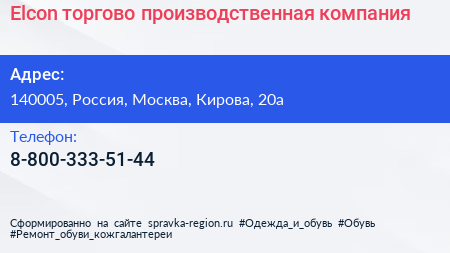 Elcon, торгово-производственная компания по адресу 140005, Россия, Москва, Кирова, 20а в дальнейшем Организация, размещена в следующих категориях: