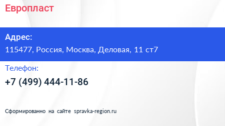 Европласт по адресу 115477, Россия, Москва, Деловая, 11 ст7 в дальнейшем Организация, размещена в следующих категориях: