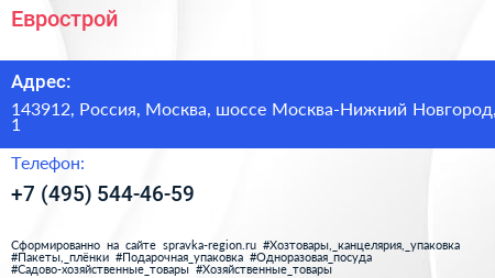 Еврострой по адресу 143912, Россия, Москва, шоссе Москва-Нижний Новгород, 1 в дальнейшем Организация, размещена в следующих категориях: