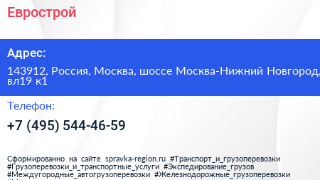 Еврострой по адресу 143912, Россия, Москва, шоссе Москва-Нижний Новгород, вл19 к1 в дальнейшем Организация, размещена в следующих категориях: