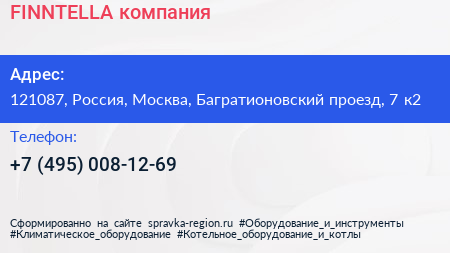 FINNTELLA, компания по адресу 121087, Россия, Москва, Багратионовский проезд, 7 к2 в дальнейшем Организация, размещена в следующих категориях: