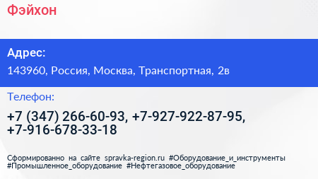Фэйхон по адресу 143960, Россия, Москва, Транспортная, 2в в дальнейшем Организация, размещена в следующих категориях: