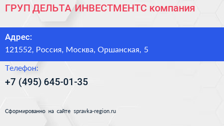 ГРУП ДЕЛЬТА ИНВЕСТМЕНТС, компания по адресу 121552, Россия, Москва, Оршанская, 5 в дальнейшем Организация, размещена в следующих категориях:
