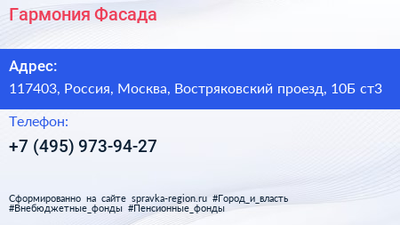 Гармония Фасада по адресу 117403, Россия, Москва, Востряковский проезд, 10Б ст3 в дальнейшем Организация, размещена в следующих категориях:
