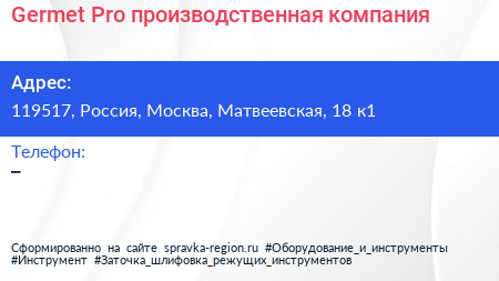 Germet.Pro, производственная компания по адресу 119517, Россия, Москва, Матвеевская, 18 к1 в дальнейшем Организация, размещена в следующих категориях: