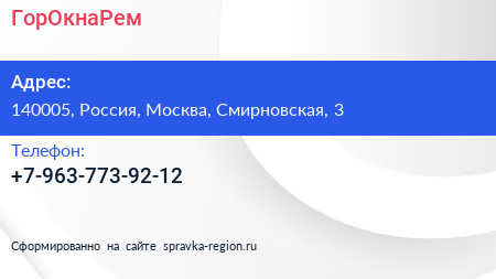 ГорОкнаРем по адресу 140005, Россия, Москва, Смирновская, 3 в дальнейшем Организация, размещена в следующих категориях: