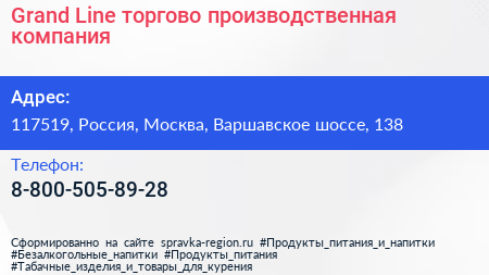 Grand Line, торгово-производственная компания по адресу 117519, Россия, Москва, Варшавское шоссе, 138 в дальнейшем Организация, размещена в следующих категориях: