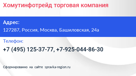 Хомутинфотрейд, торговая компания по адресу 127287, Россия, Москва, Башиловская, 24а в дальнейшем Организация, размещена в следующих категориях: