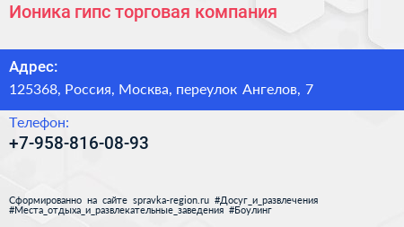 Ионика гипс, торговая компания по адресу 125368, Россия, Москва, переулок Ангелов, 7 в дальнейшем Организация, размещена в следующих категориях: