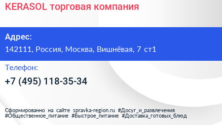 KERASOL, торговая компания по адресу 142111, Россия, Москва, Вишнёвая, 7 ст1 в дальнейшем Организация, размещена в следующих категориях: