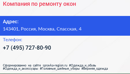 Компания по ремонту окон по адресу 143401, Россия, Москва, Спасская, 4 в дальнейшем Организация, размещена в следующих категориях: