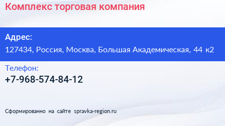 Комплекс, торговая компания по адресу 127434, Россия, Москва, Большая Академическая, 44 к2 в дальнейшем Организация, размещена в следующих категориях: