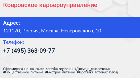 Ковровское карьероуправление по адресу 121170, Россия, Москва, Неверовского, 10 в дальнейшем Организация, размещена в следующих категориях: