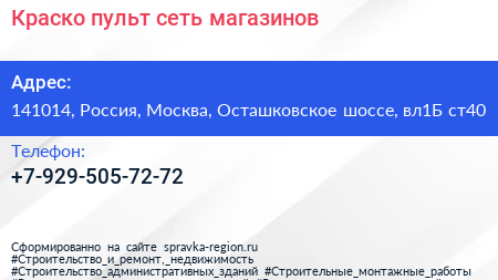 Краско-пульт, сеть магазинов по адресу 141014, Россия, Москва, Осташковское шоссе, вл1Б ст40 в дальнейшем Организация, размещена в следующих категориях: