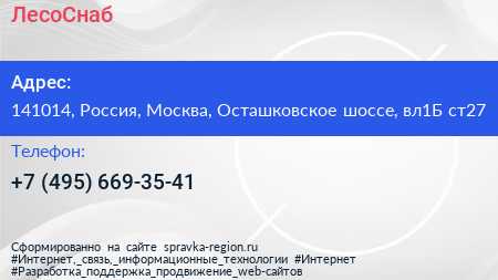 ЛесоСнаб по адресу 141014, Россия, Москва, Осташковское шоссе, вл1Б ст27 в дальнейшем Организация, размещена в следующих категориях: