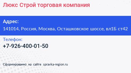 Люкс Строй, торговая компания по адресу 141014, Россия, Москва, Осташковское шоссе, вл1Б ст42 в дальнейшем Организация, размещена в следующих категориях: