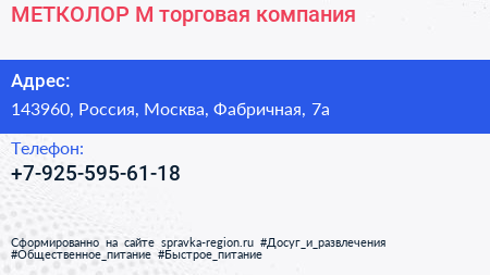 МЕТКОЛОР-М, торговая компания по адресу 143960, Россия, Москва, Фабричная, 7а в дальнейшем Организация, размещена в следующих категориях: