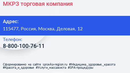 МКРЗ, торговая компания по адресу 115477, Россия, Москва, Деловая, 12 в дальнейшем Организация, размещена в следующих категориях: