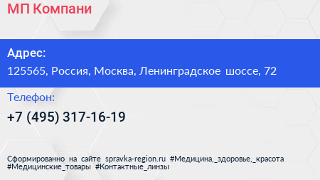 МП-Компани по адресу 125565, Россия, Москва, Ленинградское шоссе, 72 в дальнейшем Организация, размещена в следующих категориях: