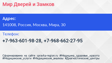 Мир Дверей и Замков по адресу 141008, Россия, Москва, Мира, 30 в дальнейшем Организация, размещена в следующих категориях: