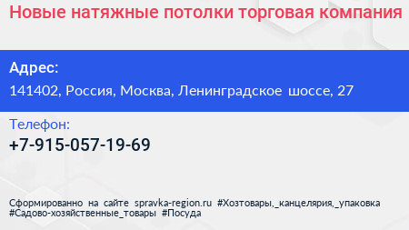 Новые натяжные потолки, торговая компания по адресу 141402, Россия, Москва, Ленинградское шоссе, 27 в дальнейшем Организация, размещена в следующих категориях: