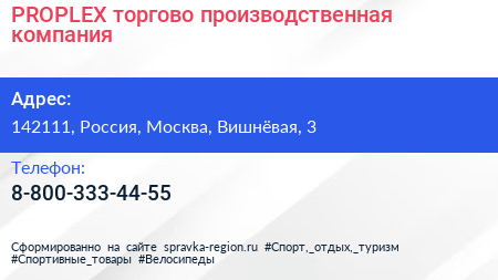 PROPLEX, торгово-производственная компания по адресу 142111, Россия, Москва, Вишнёвая, 3 в дальнейшем Организация, размещена в следующих категориях: