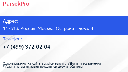 ParsekPro по адресу 117513, Россия, Москва, Островитянова, 4 в дальнейшем Организация, размещена в следующих категориях:
