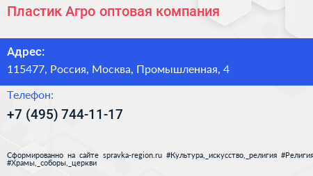 Пластик Агро, оптовая компания по адресу 115477, Россия, Москва, Промышленная, 4 в дальнейшем Организация, размещена в следующих категориях: