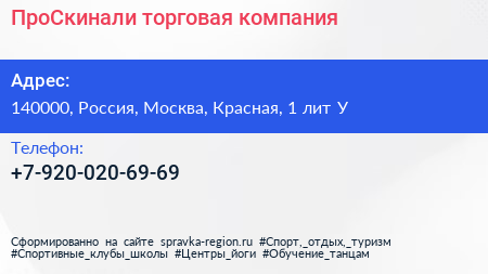 ПроСкинали, торговая компания по адресу 140000, Россия, Москва, Красная, 1 лит У в дальнейшем Организация, размещена в следующих категориях:
