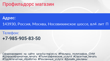 Профильдорс, магазин по адресу 143930, Россия, Москва, Носовихинское шоссе, вл4 лит П в дальнейшем Организация, размещена в следующих категориях: