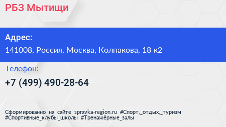 РБЗ Мытищи по адресу 141008, Россия, Москва, Колпакова, 18 к2 в дальнейшем Организация, размещена в следующих категориях: