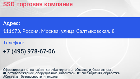 SSD, торговая компания по адресу 111673, Россия, Москва, улица Салтыковская, 8 в дальнейшем Организация, размещена в следующих категориях: