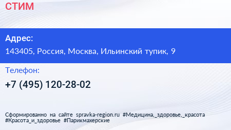 СТИМ по адресу 143405, Россия, Москва, Ильинский тупик, 9 в дальнейшем Организация, размещена в следующих категориях: