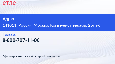 СТЛС по адресу 141011, Россия, Москва, Коммунистическая, 25г к6 в дальнейшем Организация, размещена в следующих категориях: