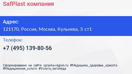 SafPlast, компания по адресу 121170, Россия, Москва, Кульнева, 3 ст1 в дальнейшем Организация, размещена в следующих категориях: