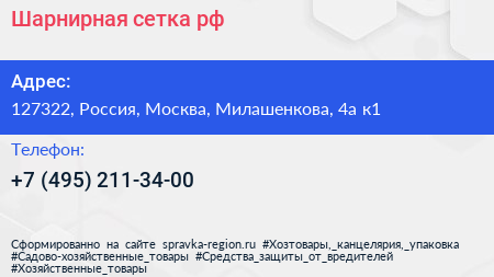 Шарнирная-сетка.рф по адресу 127322, Россия, Москва, Милашенкова, 4а к1 в дальнейшем Организация, размещена в следующих категориях: