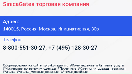 SinicaGates, торговая компания по адресу 140015, Россия, Москва, Инициативная, 30в в дальнейшем Организация, размещена в следующих категориях: