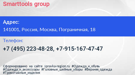 Smarttools group по адресу 141001, Россия, Москва, Пограничная, 18 в дальнейшем Организация, размещена в следующих категориях: