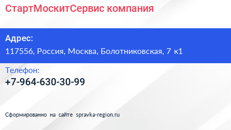 СтартМоскитСервис, компания по адресу 117556, Россия, Москва, Болотниковская, 7 к1 в дальнейшем Организация, размещена в следующих категориях:
