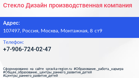 Стекло-Дизайн, производственная компания по адресу 107497, Россия, Москва, Монтажная, 8 ст9 в дальнейшем Организация, размещена в следующих категориях: