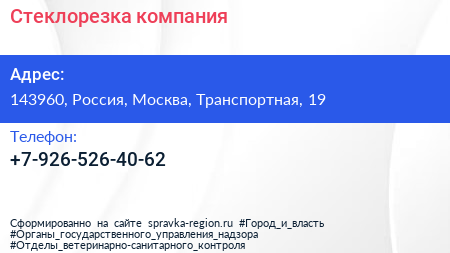 Стеклорезка, компания по адресу 143960, Россия, Москва, Транспортная, 19 в дальнейшем Организация, размещена в следующих категориях: