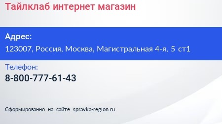 Тайлклаб, интернет-магазин по адресу 123007, Россия, Москва, Магистральная 4-я, 5 ст1 в дальнейшем Организация, размещена в следующих категориях: