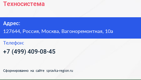 Техносистема по адресу 127644, Россия, Москва, Вагоноремонтная, 10а в дальнейшем Организация, размещена в следующих категориях: