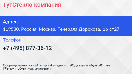 ТутСтекло, компания по адресу 119530, Россия, Москва, Генерала Дорохова, 16 ст27 в дальнейшем Организация, размещена в следующих категориях: