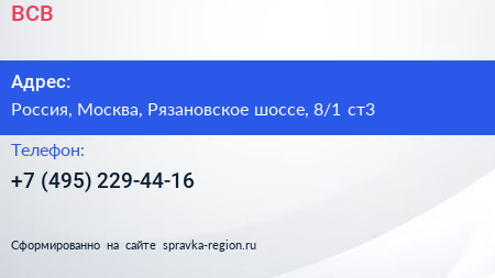 ВСВ по адресу Россия, Москва, Рязановское шоссе, 8/1 ст3 в дальнейшем Организация, размещена в следующих категориях: