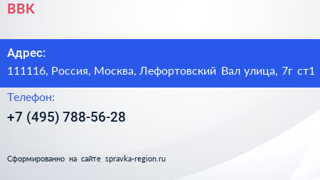 ВВК по адресу 111116, Россия, Москва, Лефортовский Вал улица, 7г ст1 в дальнейшем Организация, размещена в следующих категориях:
