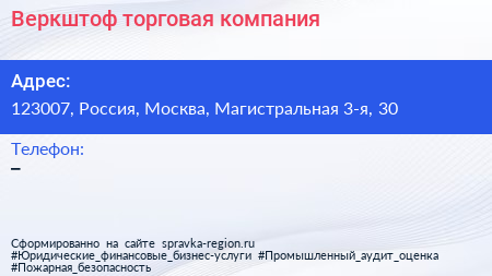 Веркштоф, торговая компания по адресу 123007, Россия, Москва, Магистральная 3-я, 30 в дальнейшем Организация, размещена в следующих категориях: