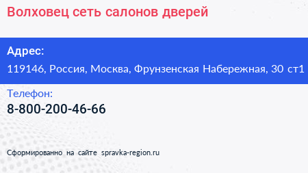 Волховец, сеть салонов дверей по адресу 119146, Россия, Москва, Фрунзенская Набережная, 30 ст1 в дальнейшем Организация, размещена в следующих категориях: