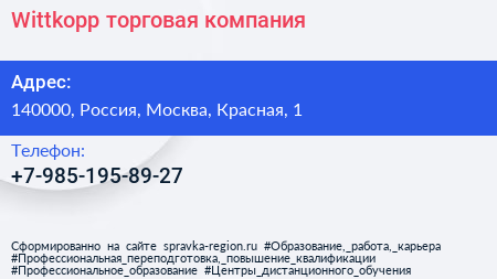Wittkopp, торговая компания по адресу 140000, Россия, Москва, Красная, 1 в дальнейшем Организация, размещена в следующих категориях: